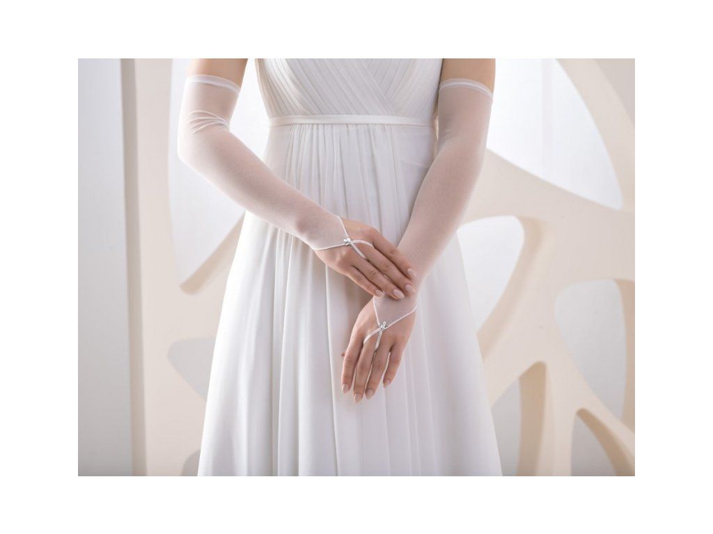 Svatební rukavičky zdobené u prstu třemi kamínky.