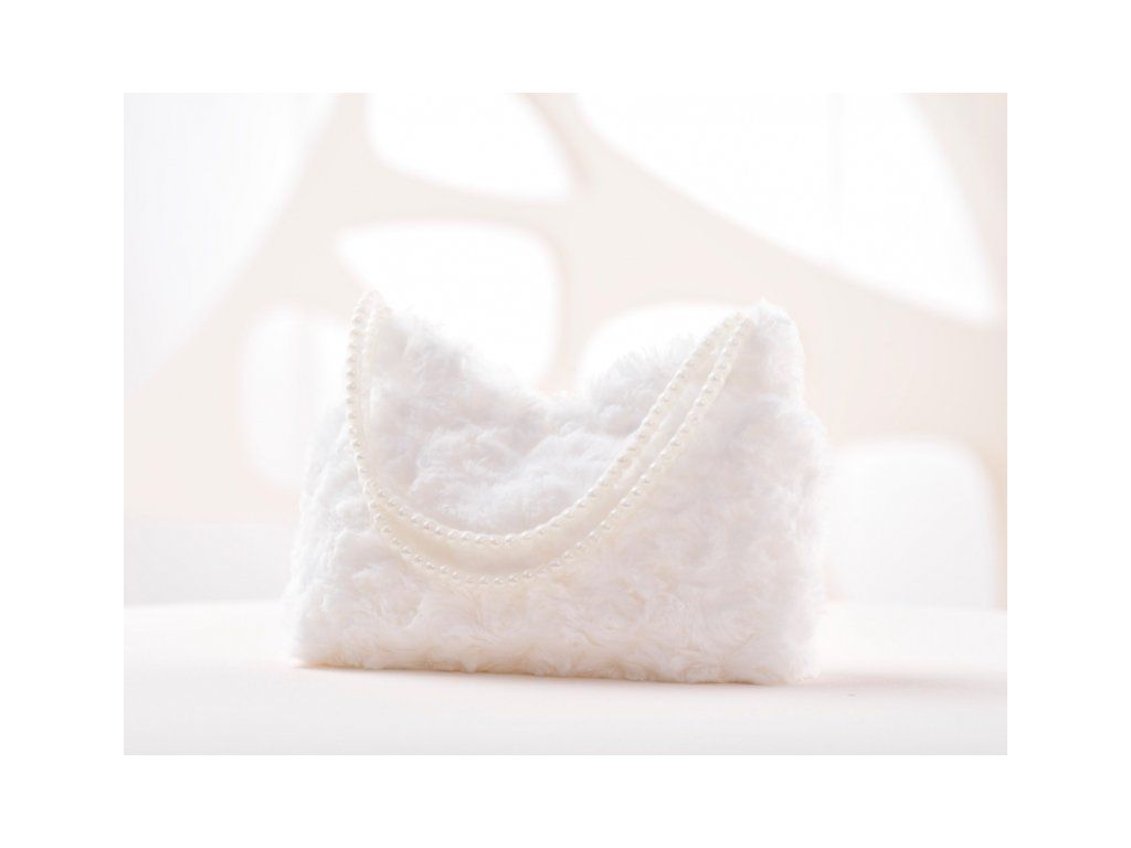 Svatební kabelka s perlovým uchem je vyrobena ze saténu.