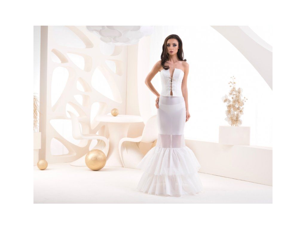 Spodnice tvar ryba s elastickým pásem, jedním kruhem a dvěma volány. Obvod kruhu 190 cm.