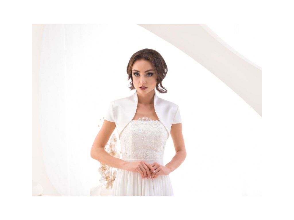 Krátké saténové bolerko. U krku přechází do malého stojáčku.