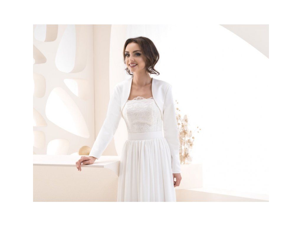 Saténové bolerko s dlouhým rukávem.Střih rukávu se mírně rozšiřuje do zvonku.