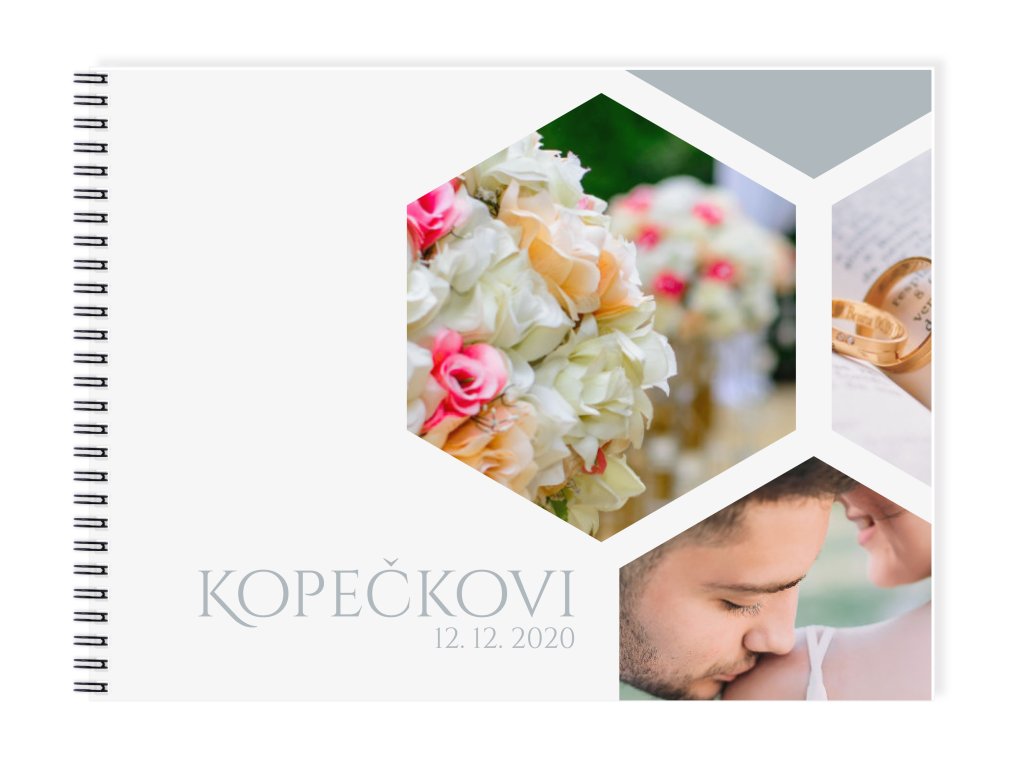 Titulní stranu tvoří dřevěná deska s potiskem geometrickým rozvržením vašich vlastních fotografií. Čistý, minimalistický styl zvýrazňuje emoce zachycené na snímcích a dodává albu moderní a luxusní vzhled.