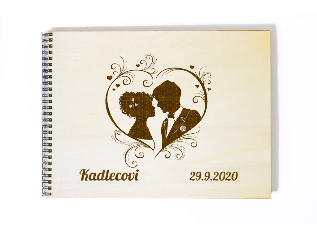 Svatební fotoalbum s gravírováním – silueta novomanželů