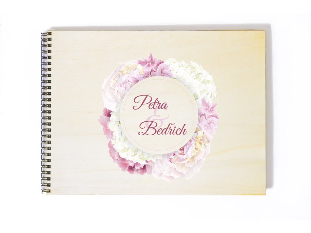 Svatební fotoalbum s květinovým motivem – jména novomanželů