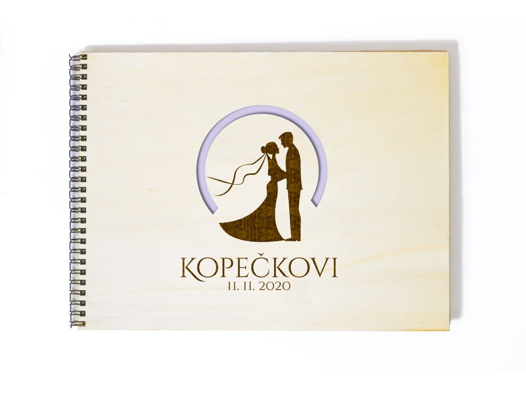 Dominantním prvkem alba je jemná silueta novomanželů zasazená do kruhového motivu, který působí čistě a harmonicky. Pod ilustrací jsou umístěna jména novomanželů a datum svatby. Přírodní světlý podklad dodává albu nadčasový a elegantní vzhled, který krásně vynikne v různých barevných provedeních.