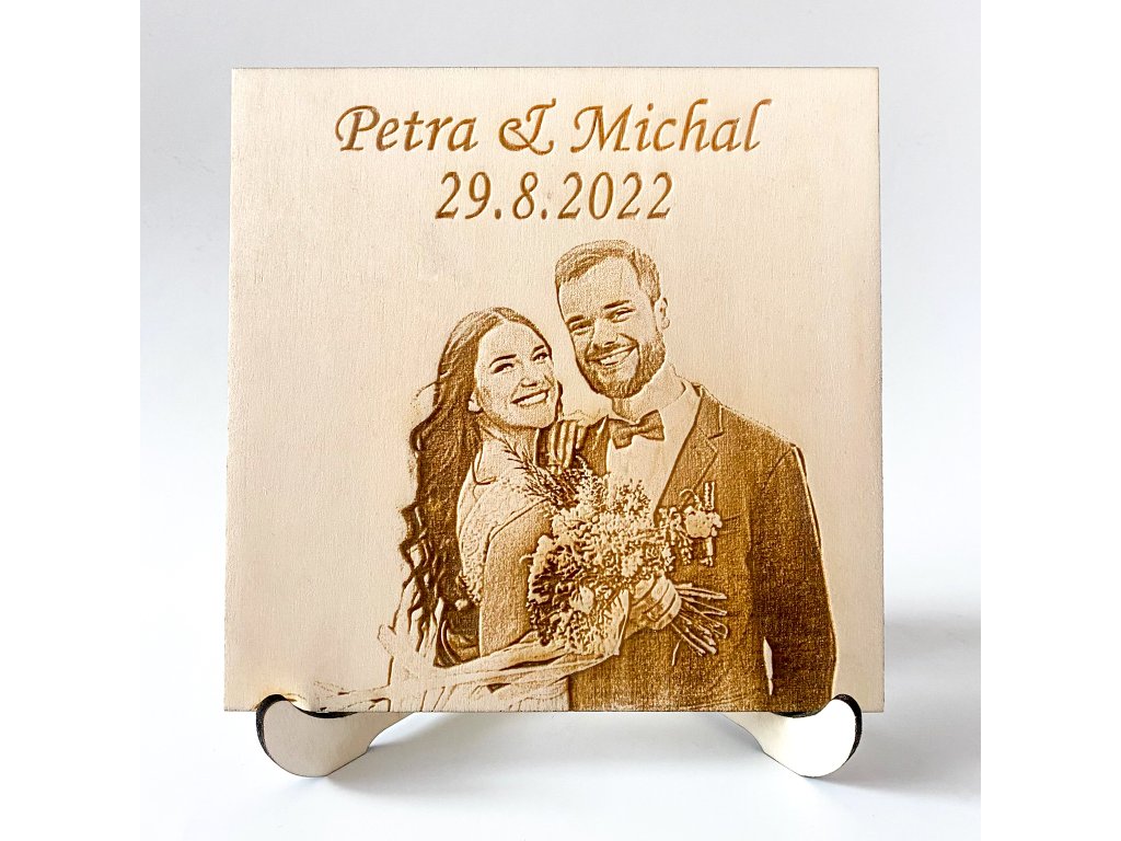 Svatební fotografie gravírovaná do dřeva – navždy spolu