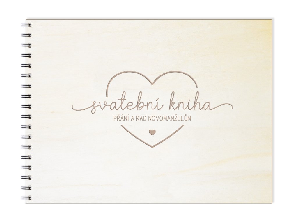 Titulní stranu lze na přání doplnit o jména novomanželů, datum svatby nebo krátký text. Vznikne tak originální svatební kniha vytvořená přesně podle vašich představ.