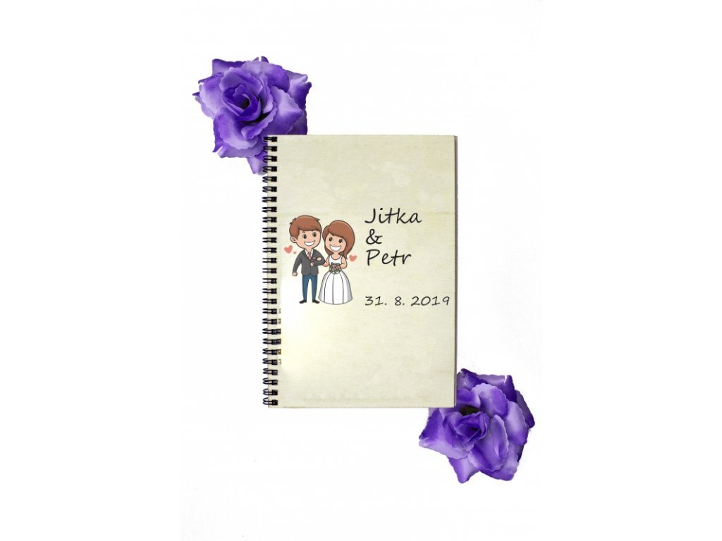 - pevné desky s veselým svatebním motivem