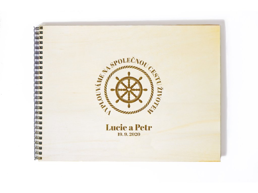 Svatební kniha přání je krásným symbolem začátku společné cesty. Motiv kormidla představuje směr, jistotu a vzájemnou podporu, kterou si novomanželé dávají do společného života. Tato kniha uchová všechny vzkazy, přání a milá slova od svatebních hostů.