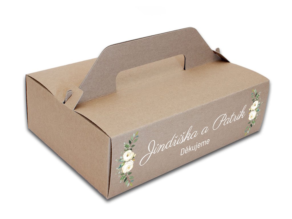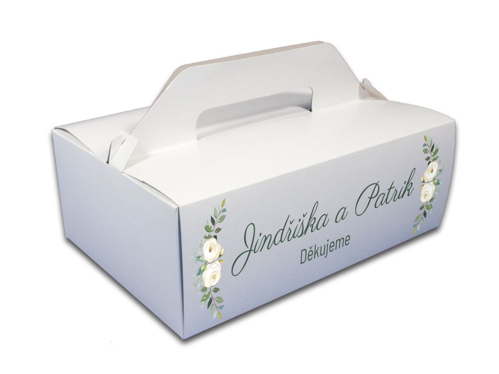 Svatební krabička na výslužku – Květinový motiv s růžemi a jmény