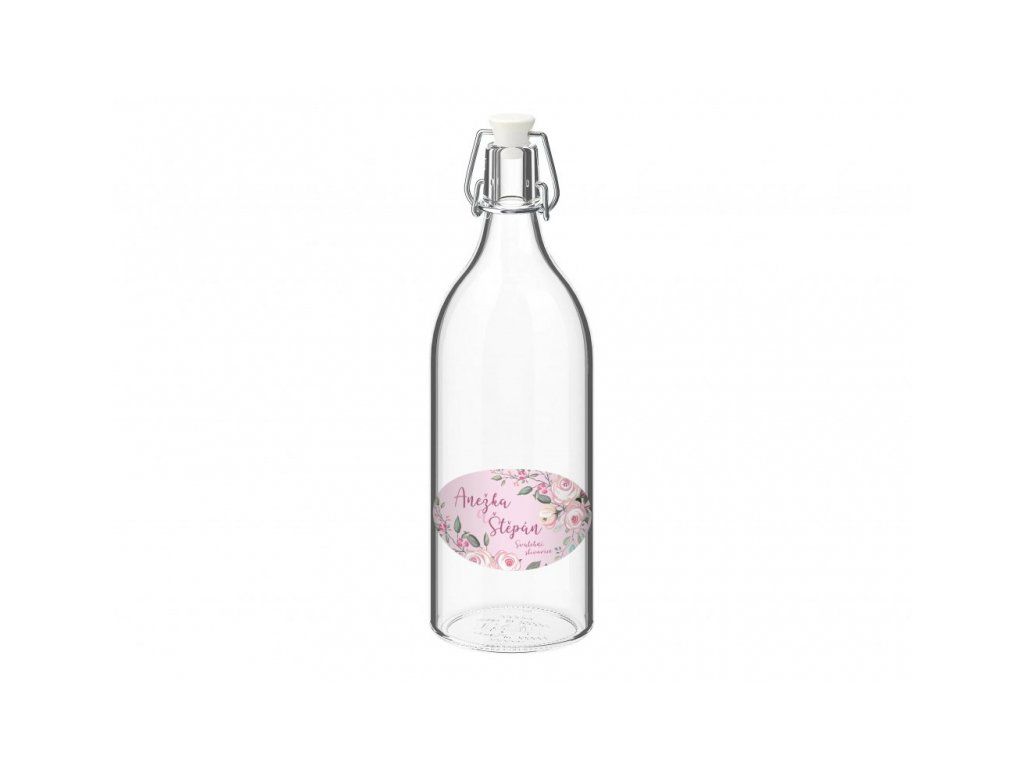 Svatební láhev s etiketou kreslené růže - 0,5 l