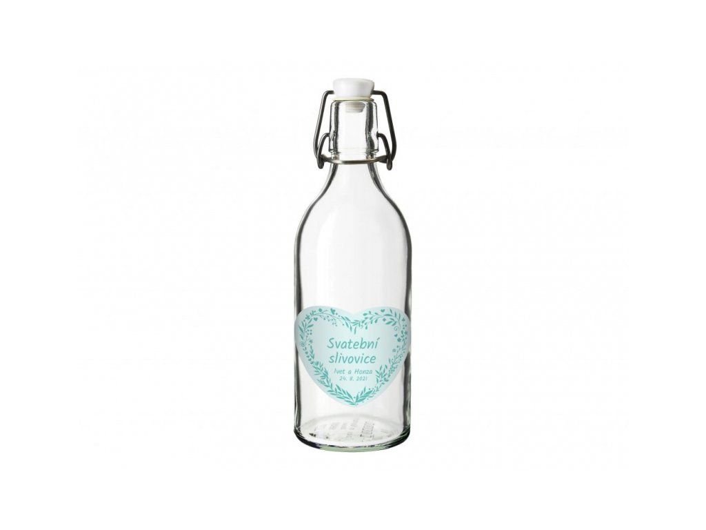 Svatební láhev s etiketou srdce - 0,5 l