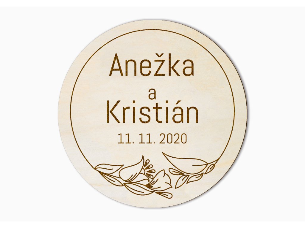 Kulatý dřevěný svatební magnet s jemným květinovým motivem je oblíbenou volbou pro páry, které hledají elegantní a zároveň osobní poděkování pro své svatební hosty. Přírodní dřevo a decentní gravírování působí nadčasově a snadno zapadnou do jakéhokoliv svatebního stylu.