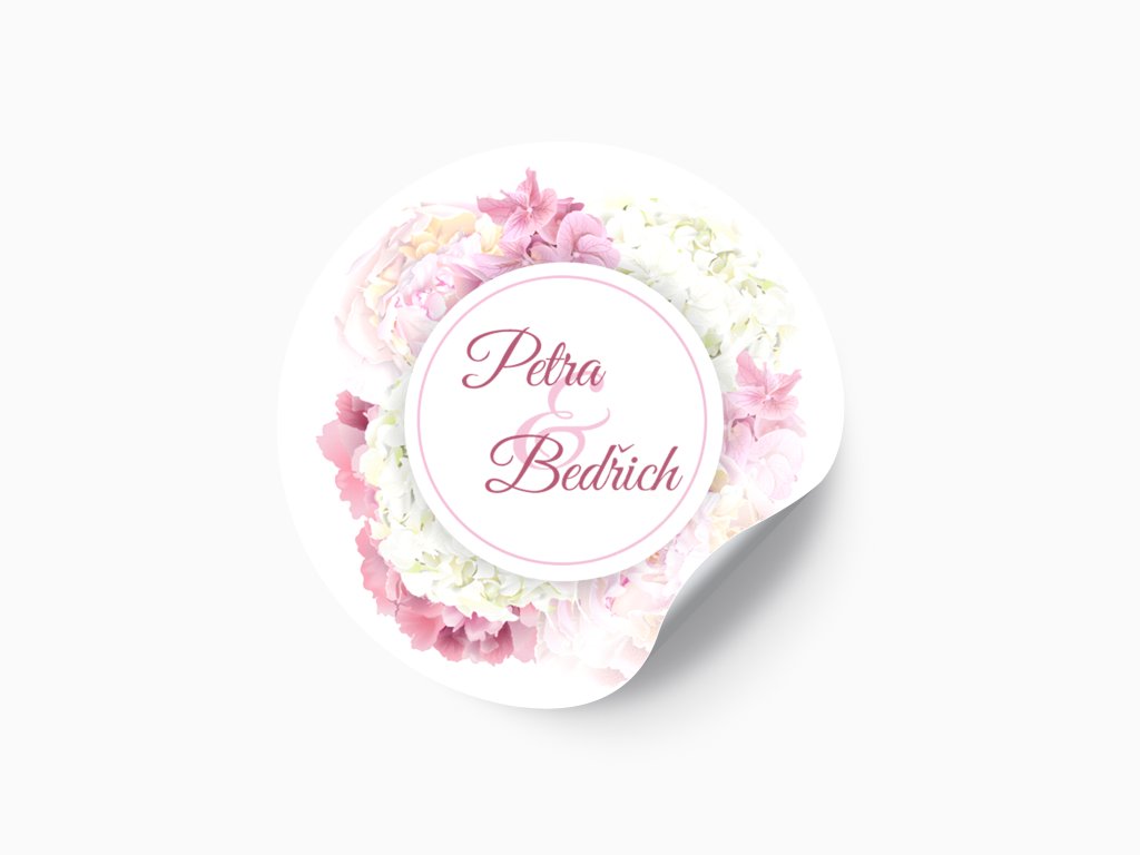 Jemné květinové motivy patří mezi nejoblíbenější svatební dekorace. Tato svatební nálepka s bohatým květinovým věncem působí romanticky, čistě a velmi vkusně. Skvěle se hodí pro klasické, romantické i pastelově laděné svatby.