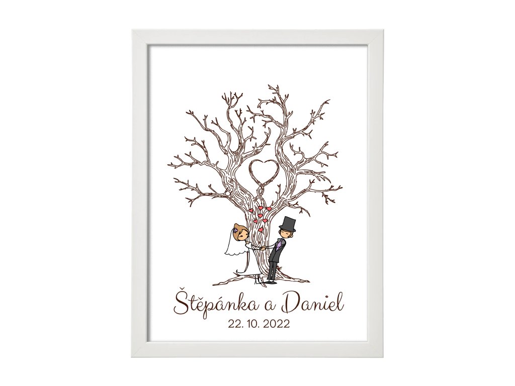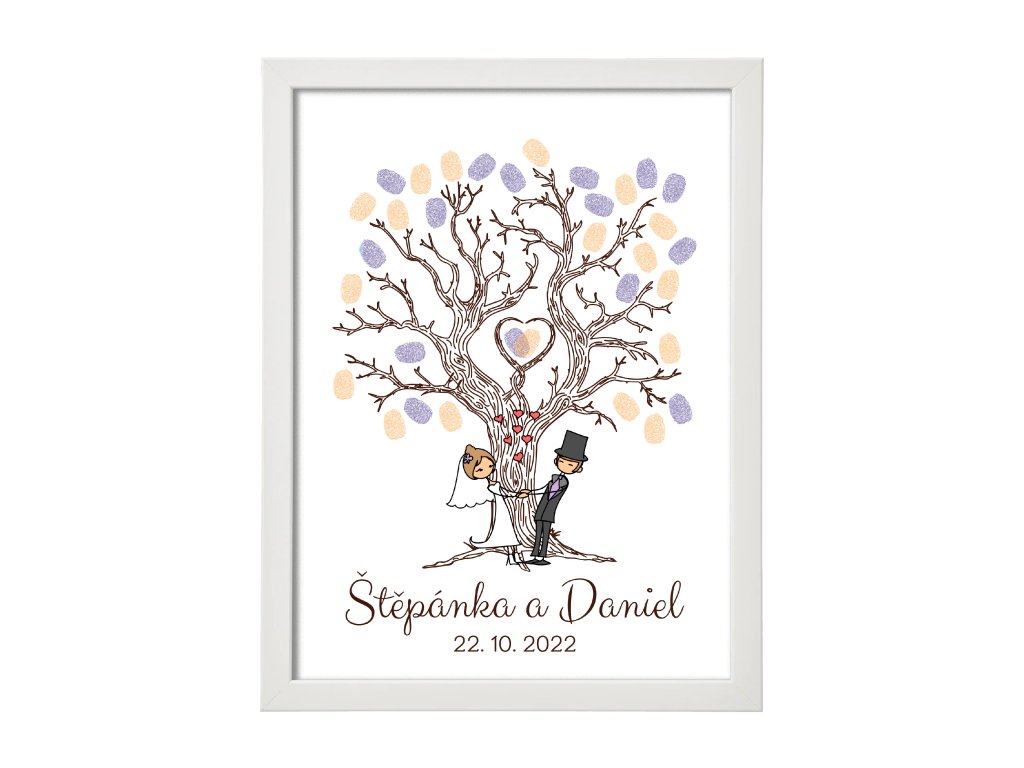 Svatební obraz – Strom lásky s otisky prstů a novomanželi