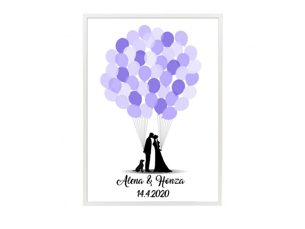 Tento svatební obraz s balónky a jemnou siluetou novomanželů je krásným symbolem lásky, radosti a společné cesty životem. Vzdušné balónky dodávají motivu lehkost a romantickou atmosféru, díky které se obraz stane nepřehlédnutelnou dekorací i dojemnou památkou na váš svatební den.
