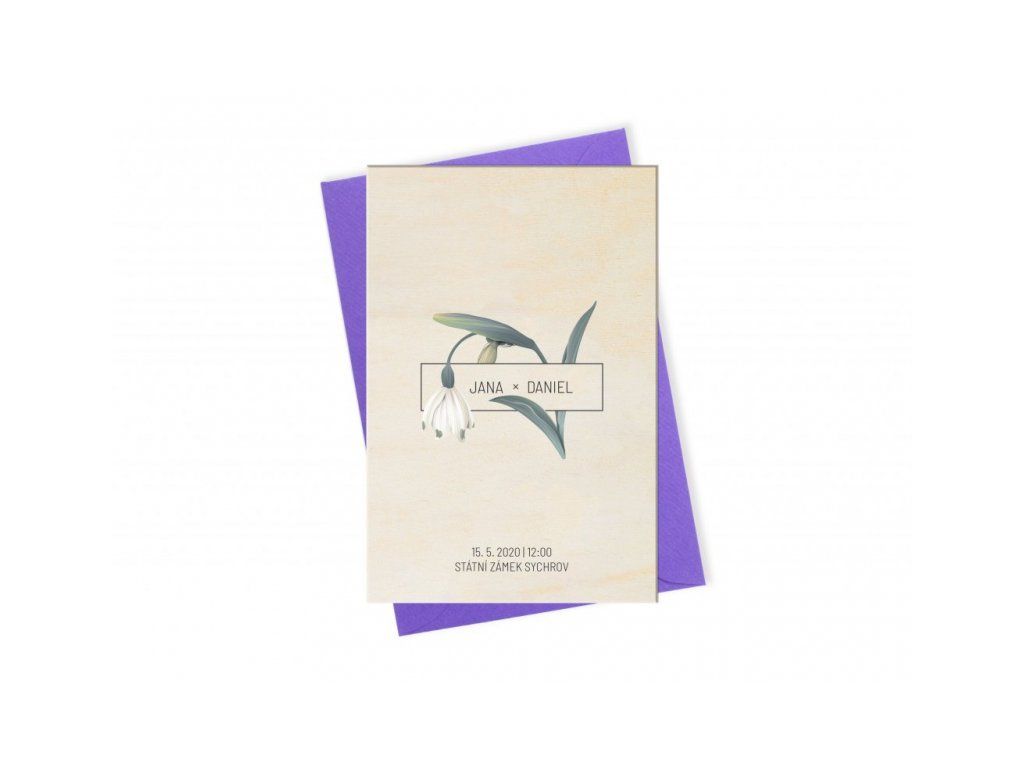Dřevěné svatební oznámení s potiskem. Veškeré texty upravíme přesně podle vašeho přání.