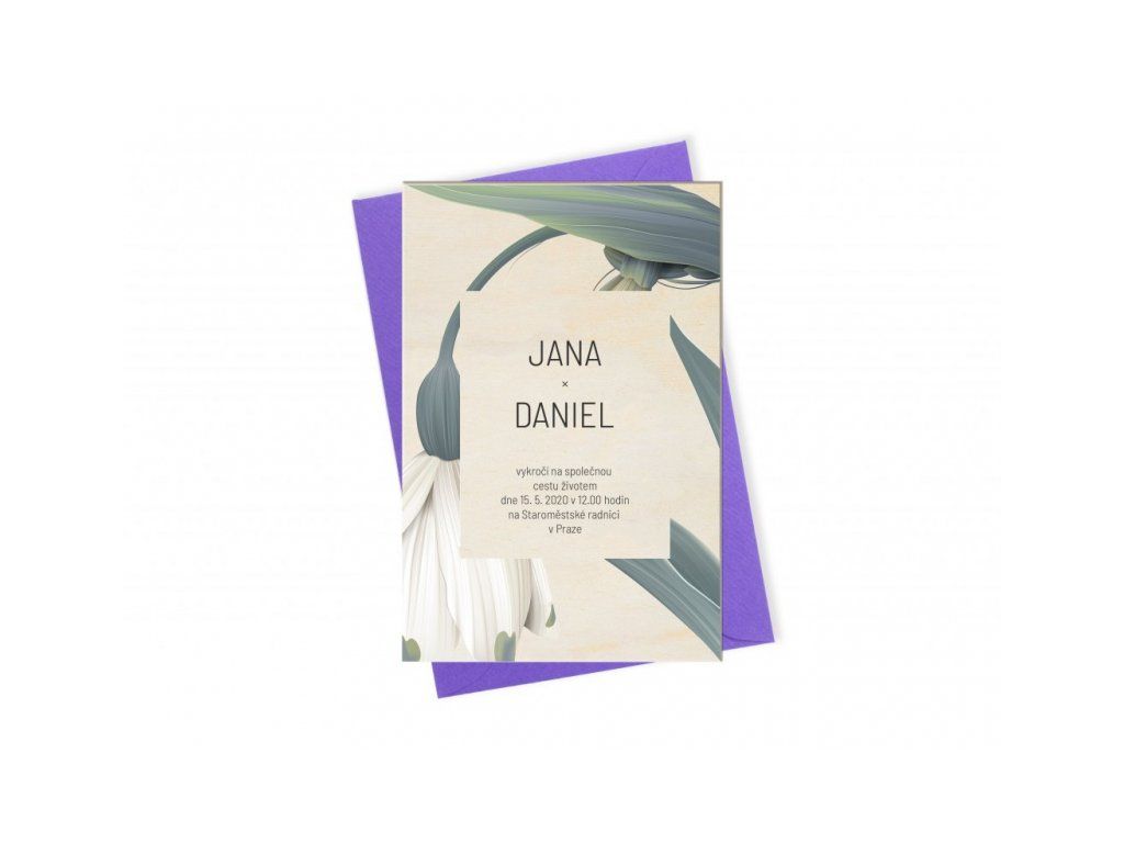 Dřevěné svatební oznámení s potiskem. Veškeré texty upravíme přesně podle vašeho přání.