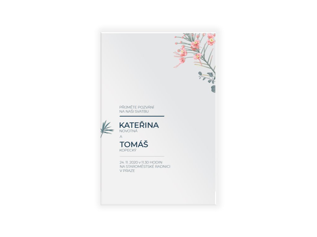 Svatební oznámení z plexiskla s jemným květinovým motivem