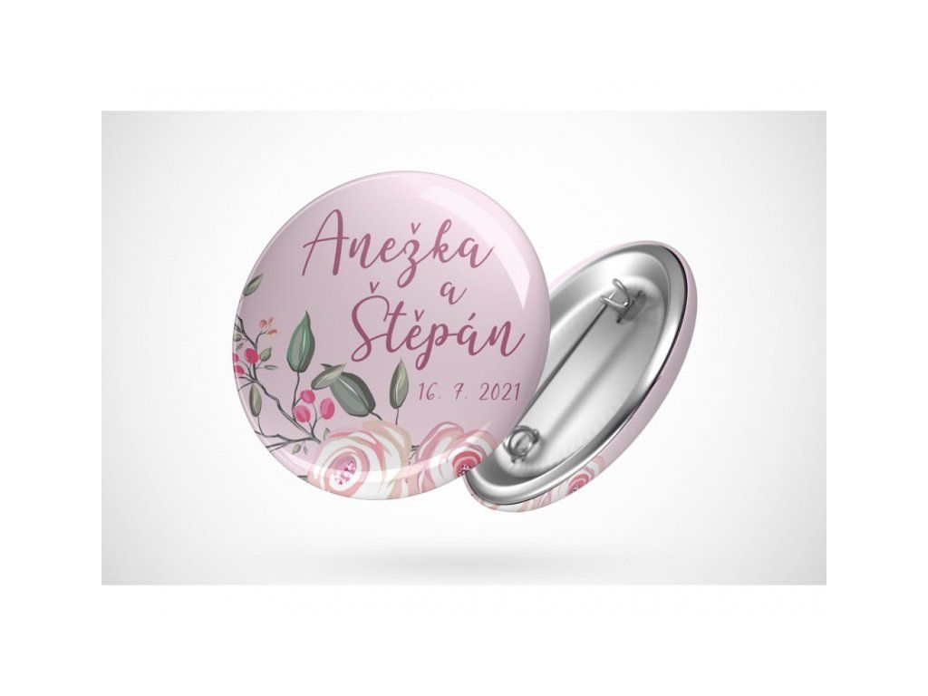 Svatební placka kreslené růže - průměr 25 mm