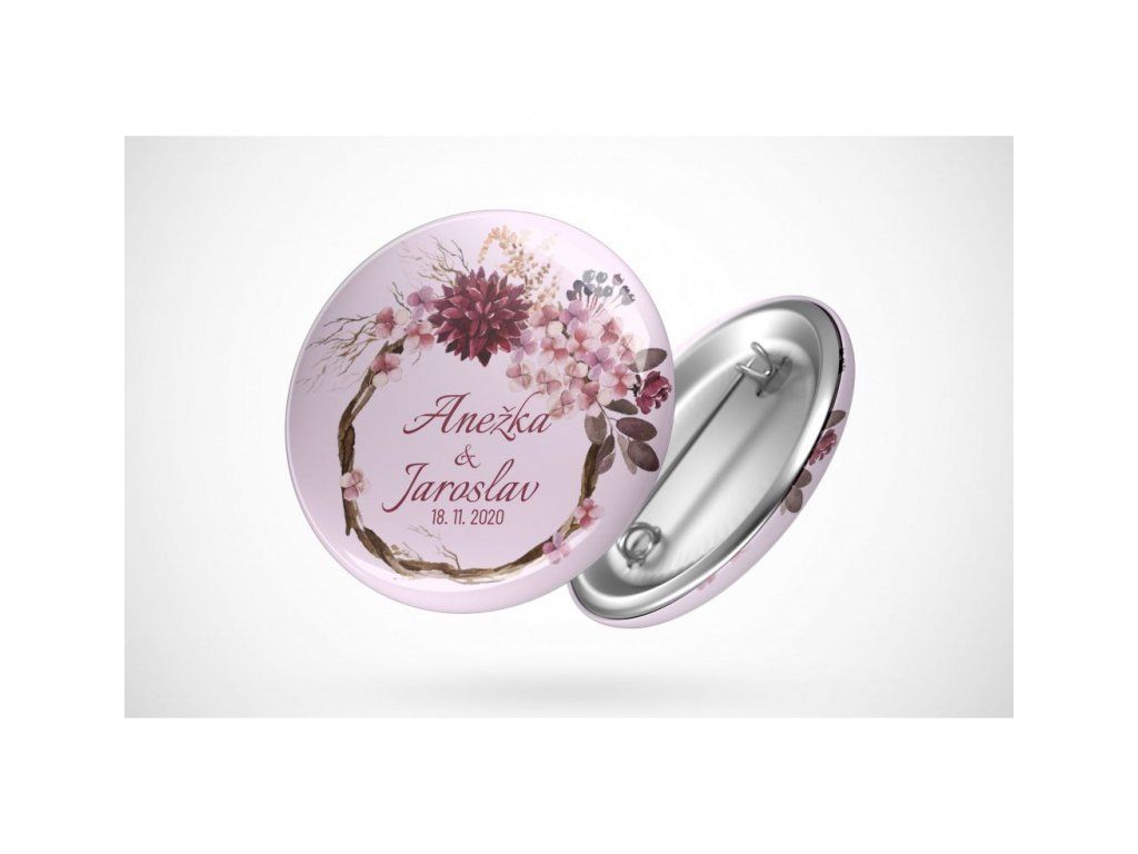 Moderní pojetí svatebních vývazků - to jsou kulaté placky. Na placku umístíme vaše jména a datum svatby. Vybrat si můžete ze dvou velikostí placek - 25mm a 37mm.