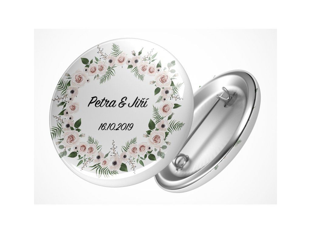 Moderní pojetí svatebních vývazků - to jsou kulaté placky. Na placku umístíme vaše jména a datum svatby. Vybrat si můžete ze dvou velikostí placek - 25mm a 37mm.