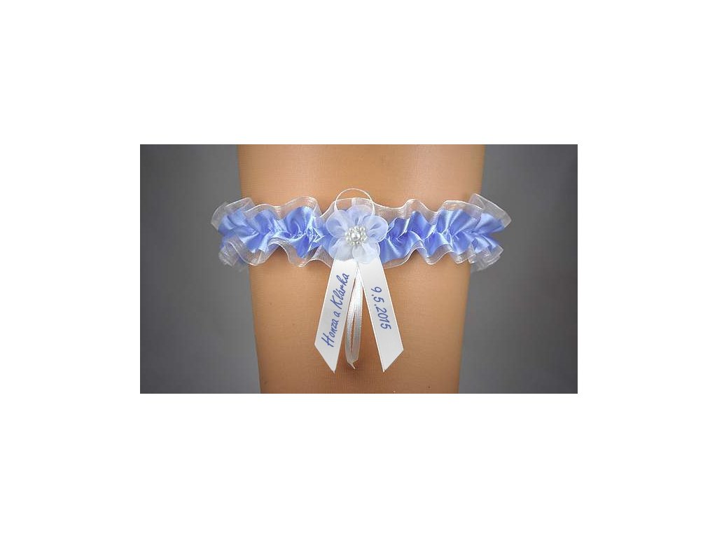 Svatební podvazek pro nevěstu s modrou stuhou a jménem