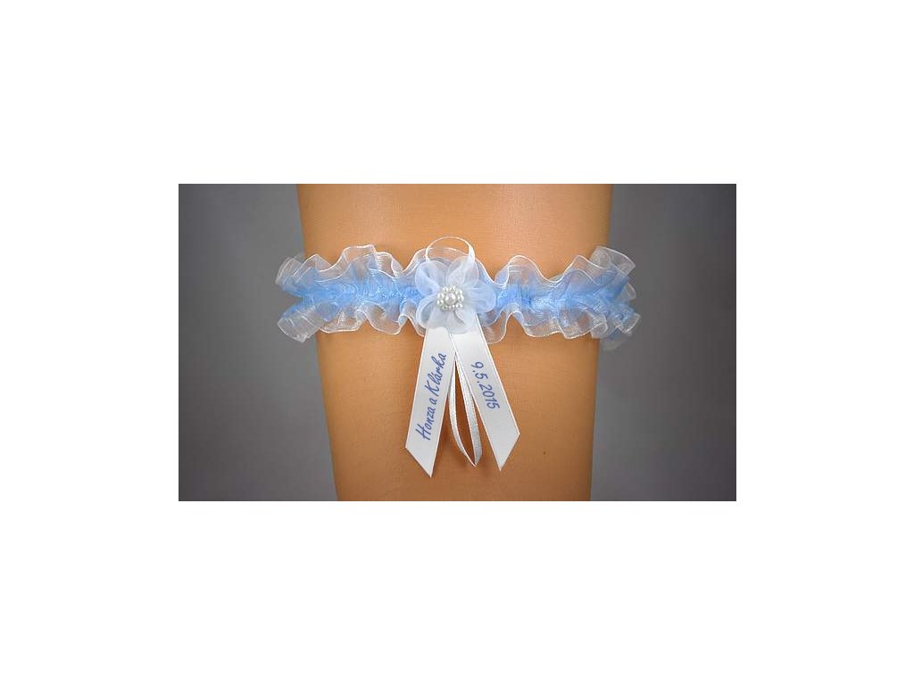 Svatební podvazek patří k tradičním doplňkům, které dodávají svatebnímu dni symboliku i kouzlo. Tento podvazek v jemných tónech bílé a modré splňuje tradici „něčeho modrého“ a zároveň působí romanticky a elegantně.