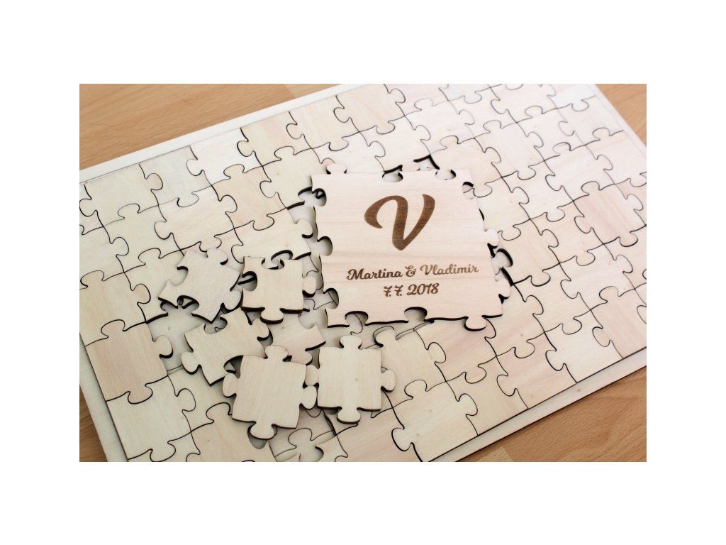 Svatební puzzle na vzkazy nebo otisky prstů. Velký puzzlík prázdný nebo s vlastním textem (vyplňte do kolonky níže).