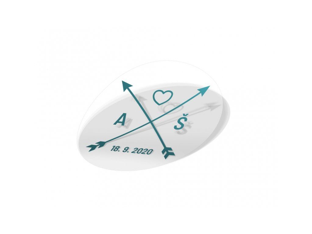 Průhledné svatební samolepky s vašimi jmény a datem svatby, které můžete použít například na dárky pro svatebčany v podobě lahví slivovice či vína. Cena za 1 ks.