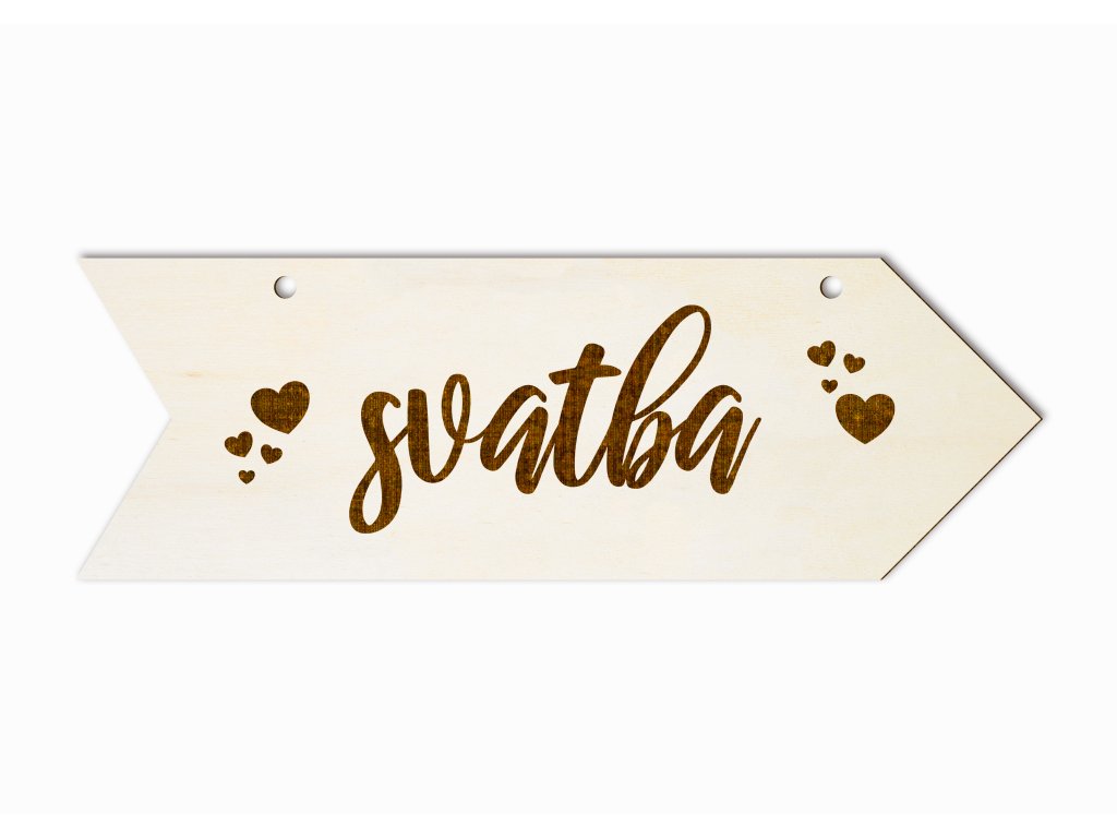 Tato cedule je vyráběna s univerzálním nápisem „svatba“. Pokud byste chtěli, symbol nebo drobnou úpravu motivu, rádi připravíme variantu na přání.