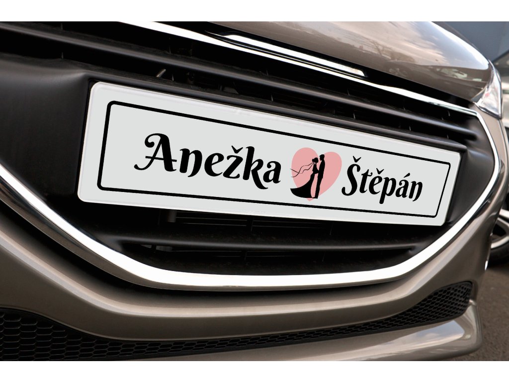 SPZ upravíme přesně podle vašich přání. Doplníme jména novomanželů a umožníme také výběr barvy srdce, aby design dokonale ladil s vaší svatbou.
