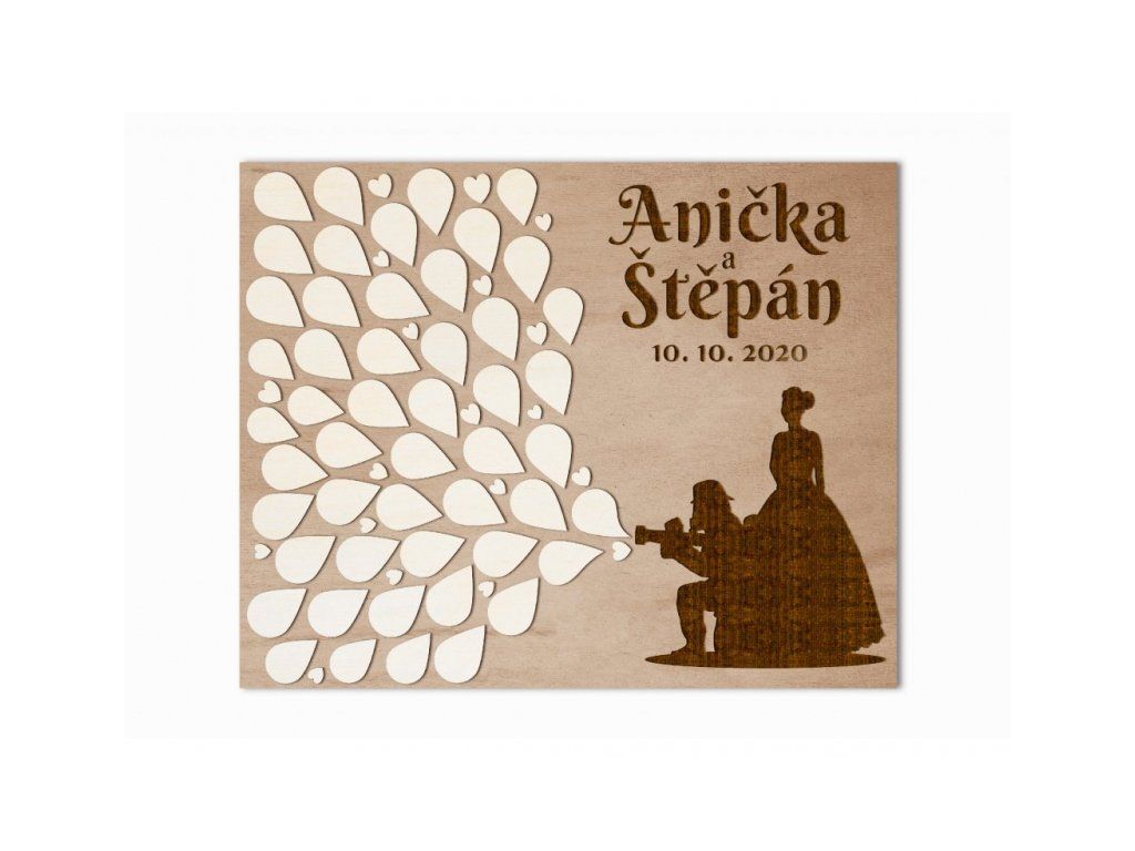 Přírodní svatební strom s podkladem v nádechu jemné ořechové barvy. Na podkladu jsou umístěna jména ženicha a nevěsty a datum svatby. Strom obsahuje celkem 50 kapek pro podpis. Celkem obsahuje 62 lístečku na podpisy či otisky.Buďte první, kdo napíše příspěvek k této položce.