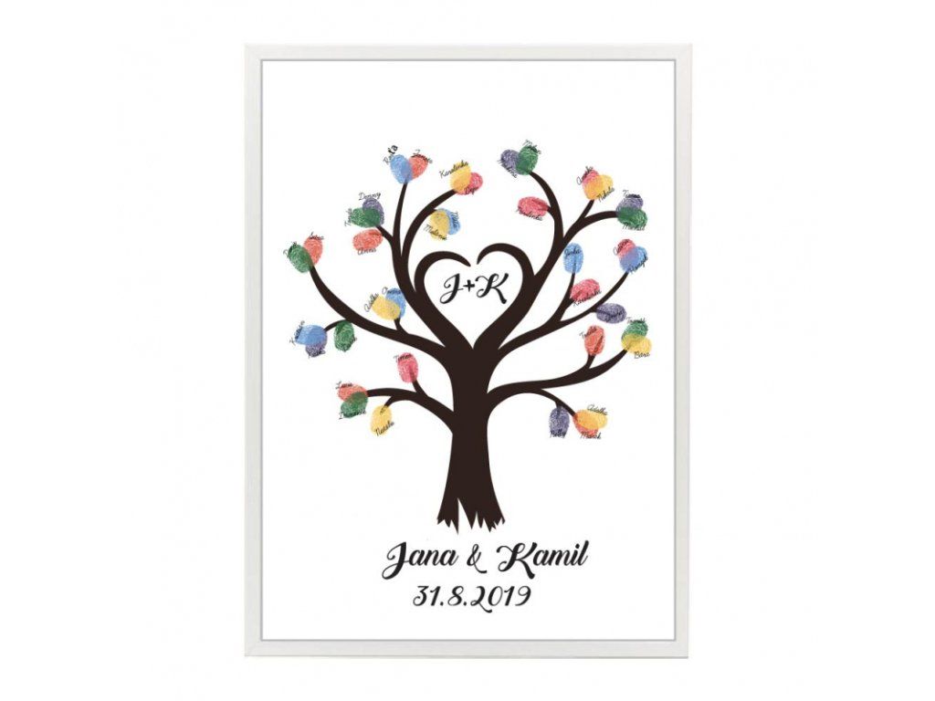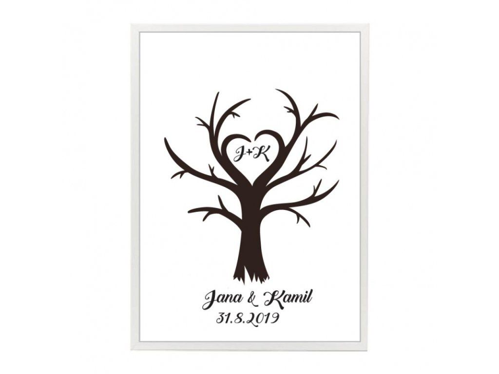 Svatební strom v klasickém provedení určený k natisknutí otisků hostů s podpisem. Strom je dodávaný v bílém rámu a je určen pro 50 - 80 otisků prstů.