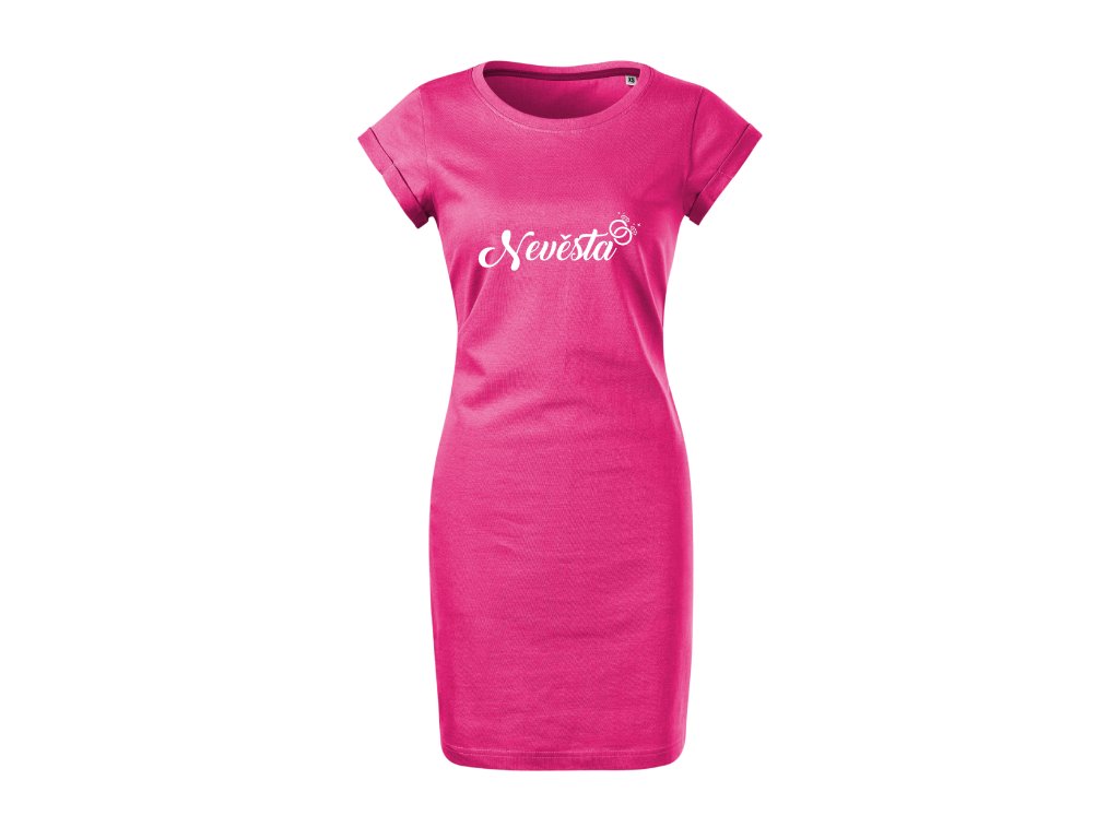 Tyto tričkové šaty s výrazným nápisem Nevěsta jsou ideální volbou nejen na ranní svatební přípravy a focení, ale také jako pohodlné oblečení na hostinu nebo party po obřadu. Díky jednoduchému, ale výraznému designu působí slavnostně a zároveň uvolněně.