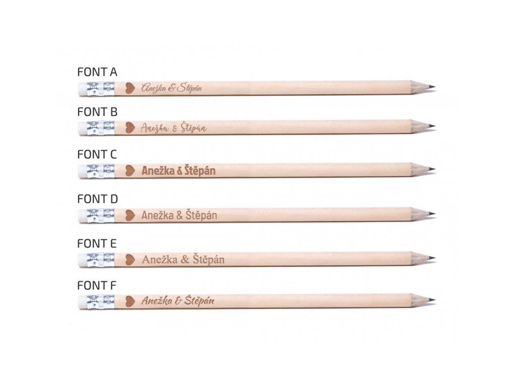 Ke svatbám neodmyslitelně patří i svatební noviny, které se často neobejdou bez nějaké křížovky či hlavolamu. Pořiďte si svatební tužky, které svatebčané na svatbě využijí a mohou si je odnést i jako malý dárek. Dřevěné tužky jsou obyčejné grafitové. Vybírejte z přírodní nebo bílé varianty. Na fotografii s fonty písma vyberte variantu, která se Vám líbí nejvíce, tu připište společně s textem a datem do kolonek nad tlačítkem koupit.Buďte první, kdo napíše příspěvek k této položce.