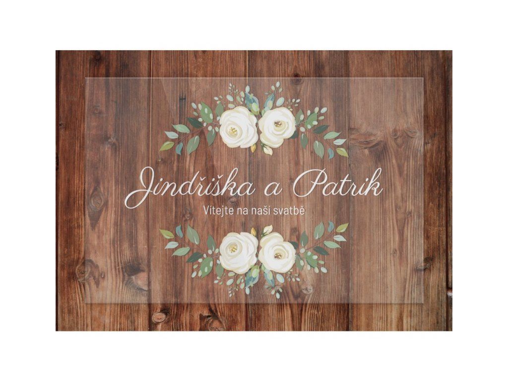 Svatební uvítací cedule bílé růže - 30x40 cm