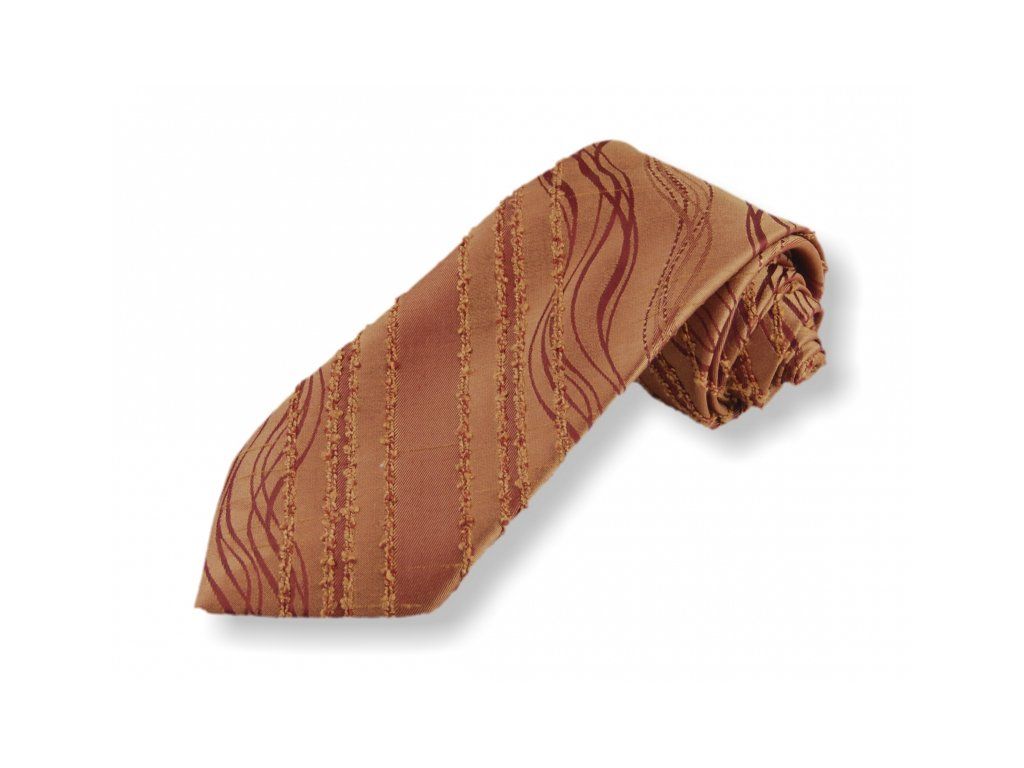 Pánská kravata vyrobená z žakárově tkaného materiálu, ze kterého vystupuje jednobarevný plastický vzor. Kravata se tkaným jednobarevným vzorem ladí do košil s proužkem nebo kostičkou.