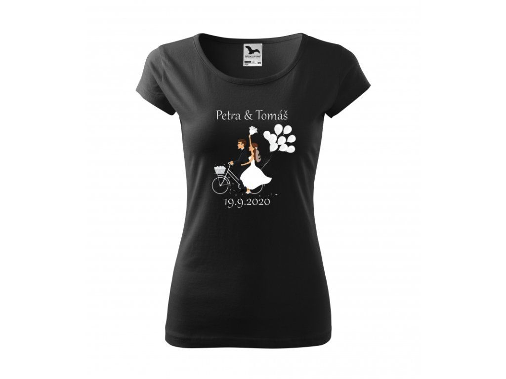 Tričko s potiskem motivu cyklopáru páru s vašimi jmény a datem svatby - tyto údaje zadejte do políčka nad tlačítkem "Do košíku".