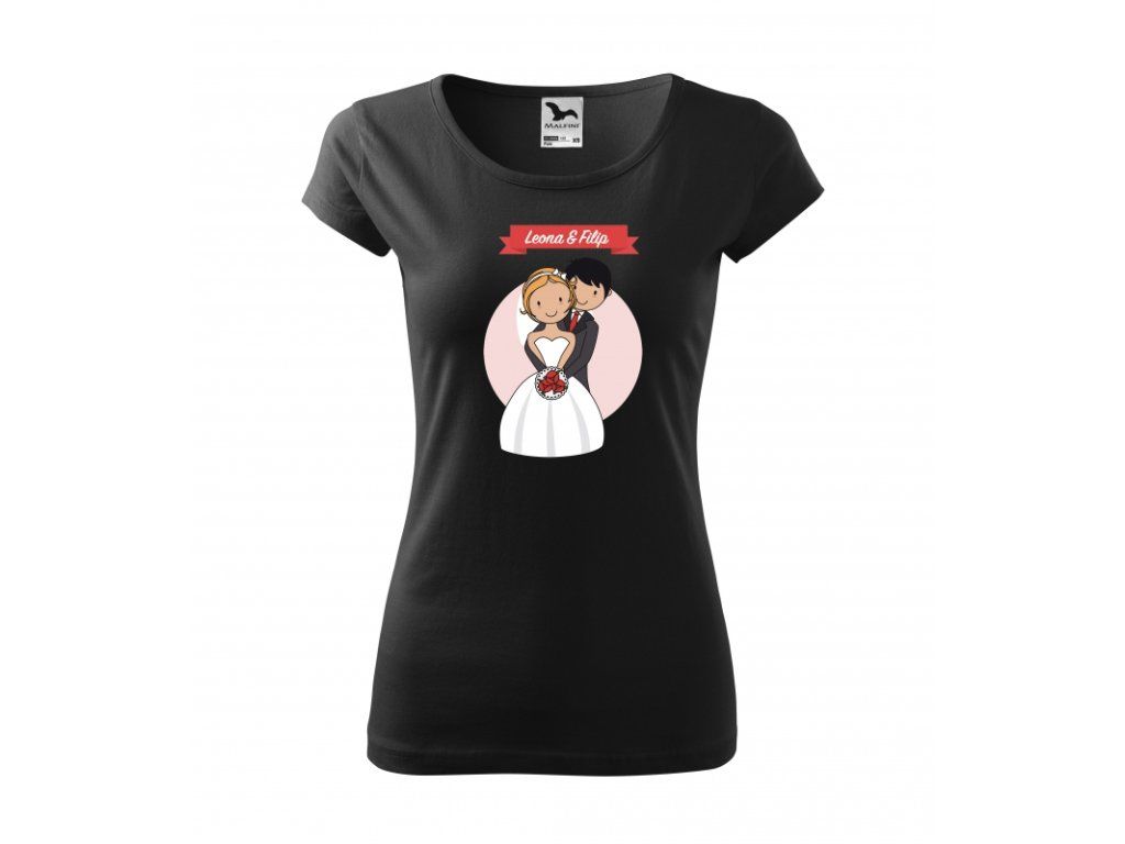Tričko s potiskem novomanželského páru v objetí a vašimi jmény - tyto údaje zadejte do políčka nad tlačítkem "Do košíku".