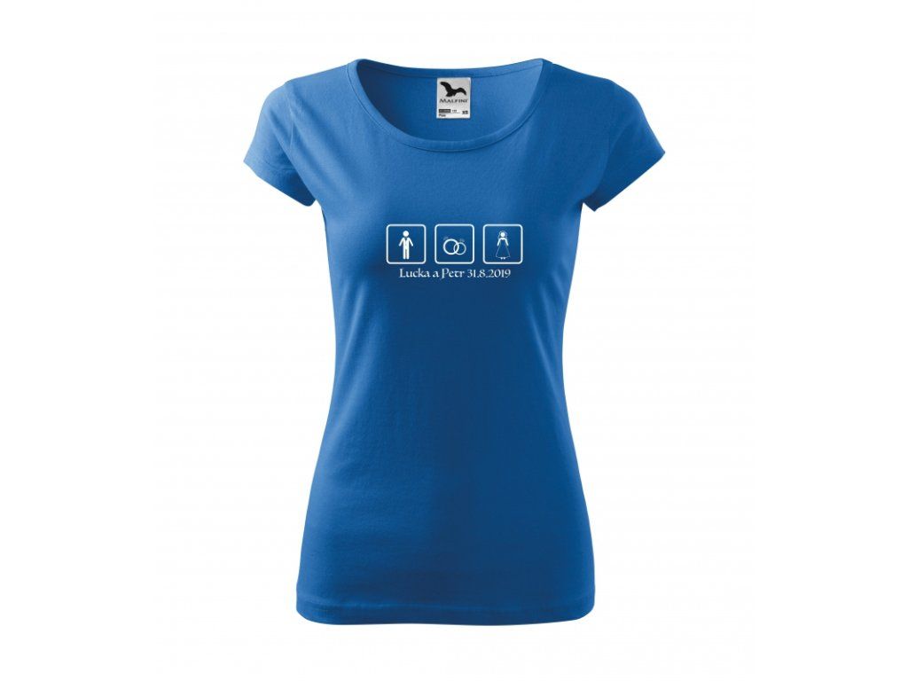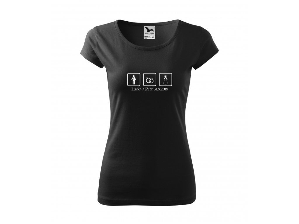 Tričko s potiskem motivu tří čtverců s vašimi jmény a datem svatby - tyto údaje zadejte do políčka nad tlačítkem "Do košíku".