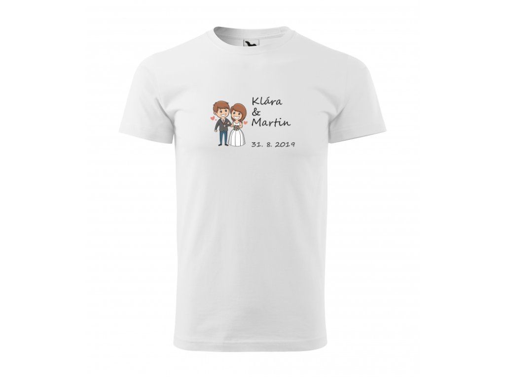 Tričko s potiskem zamilovaného páru a vašimi jmény a datem svatby - tyto údaje zadejte do políčka nad tlačítkem "Do košíku".