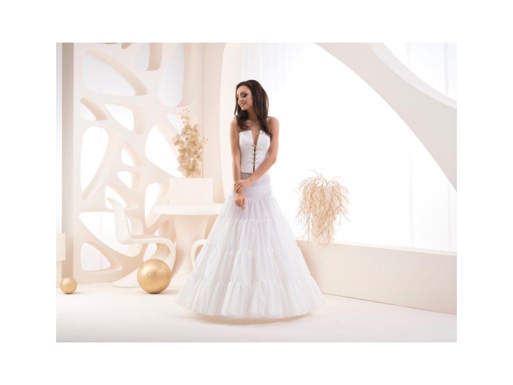 Tříkruhová spodnice s elastickým pásem a čtyřmi volány. Vhodná pod bohaté sukně a typy šatů, které jsou zůžené přes boky. Obvod spodního kruhu 270 cm.