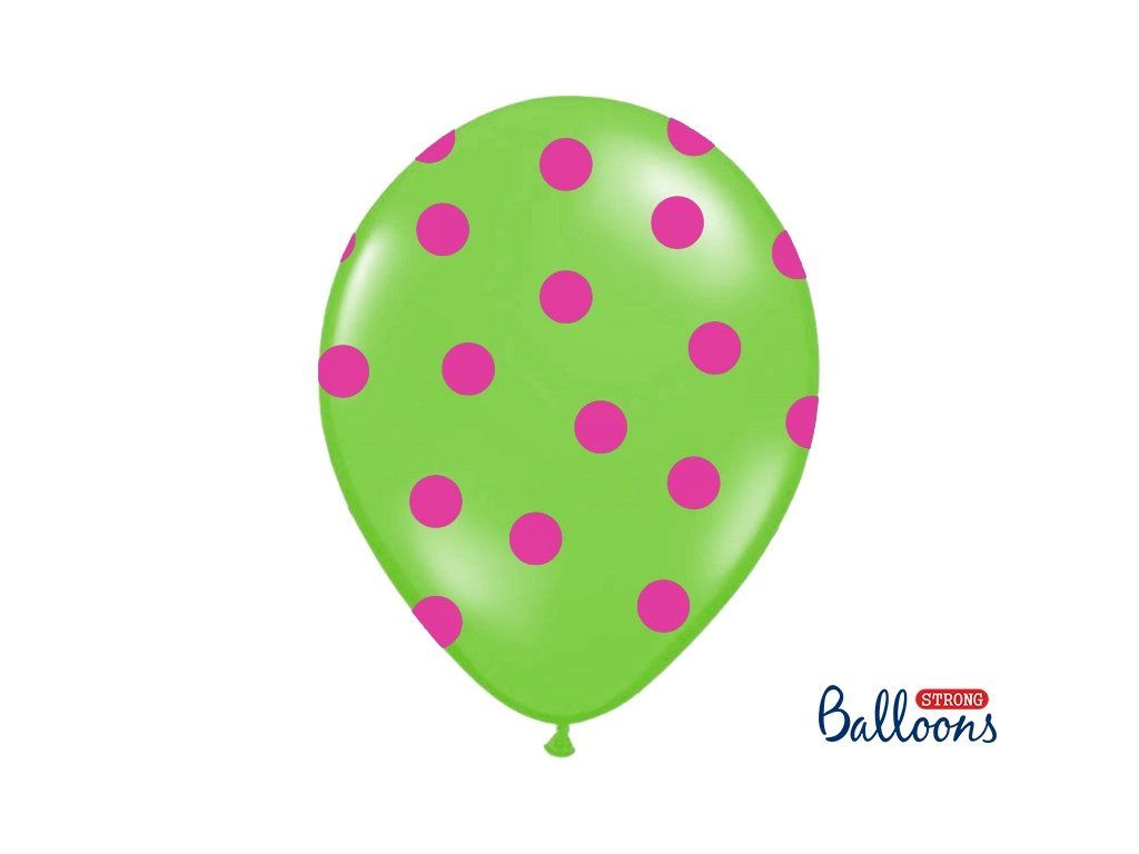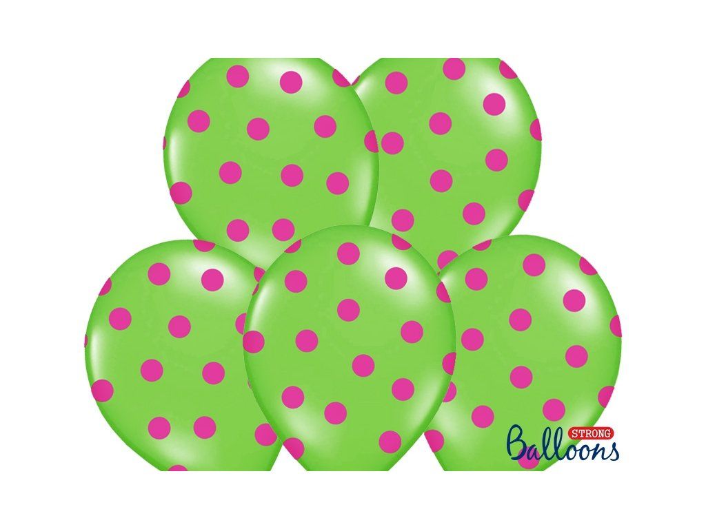 Zelený nafukovací balónek s růžovými puntíky. Velikost balónku po nafouknutí je 30 cm.Doplňkové parametry